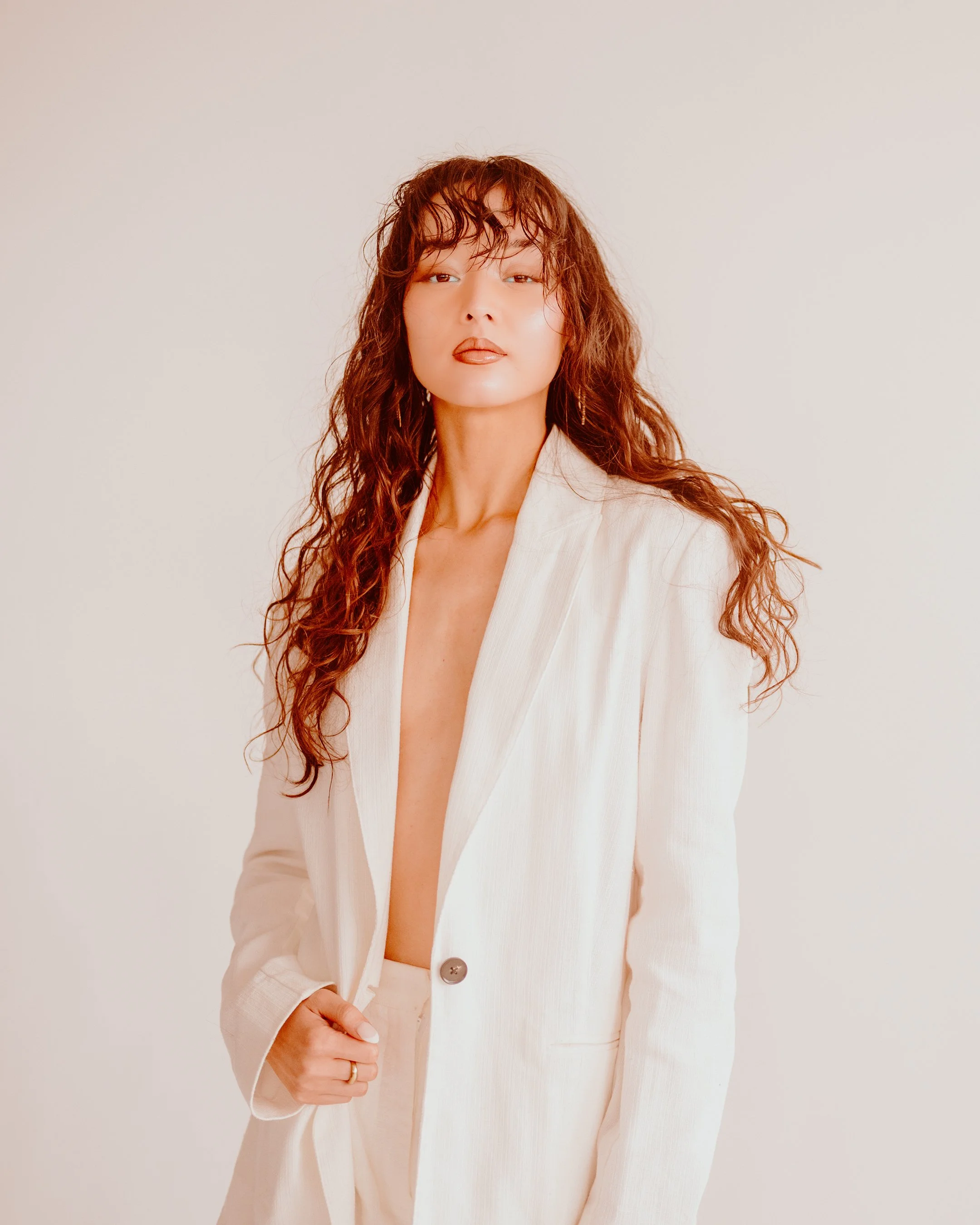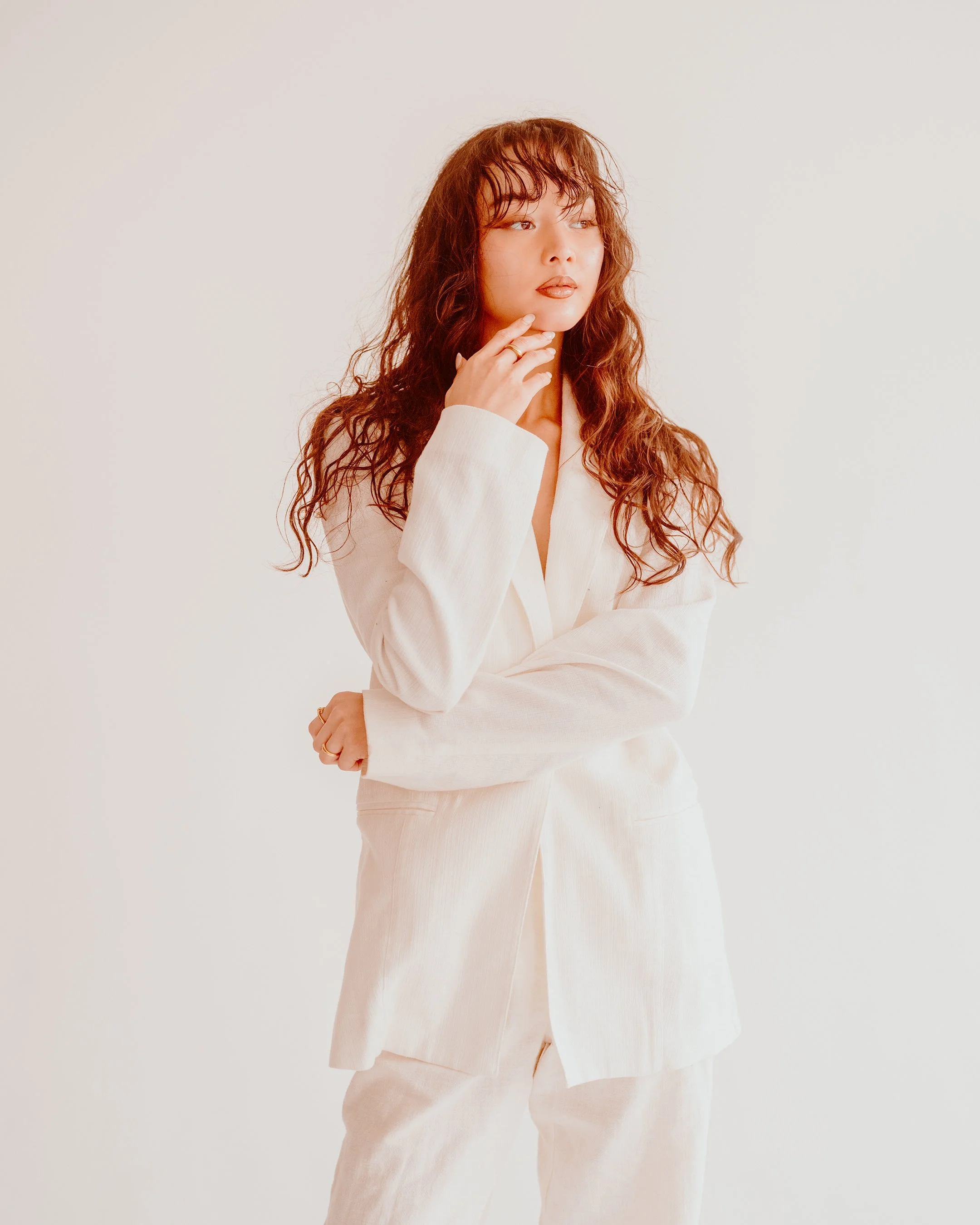 It’s generally underestimated how good a simple portrait, against a plain background, can look, so long as the lighting and styling is done right. These simple portraits look great as prints on walls too, because they add to the style rather than cluttering it. The way Soph Xu almost seems to challenge the camera here has, of course, its own power.